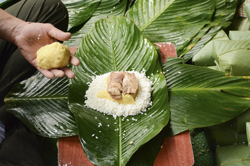 • Cách gói bánh: Không dùng khuôn, bánh được gói thủ công bởi đôi tay khéo léo của những nghệ nhân gói bánh. Khi gói phải dùng lực vừa phải, nếu mạnh quá thì bánh sẽ cứng, còn nếu yếu quá, bánh sẽ nhão.